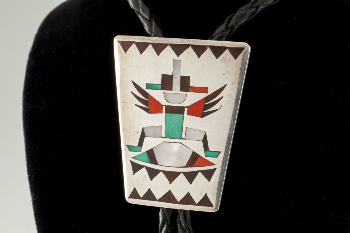 Toll! Zuni Eagle Dancer Sterling Silver Inlay Bolo Tie von ln