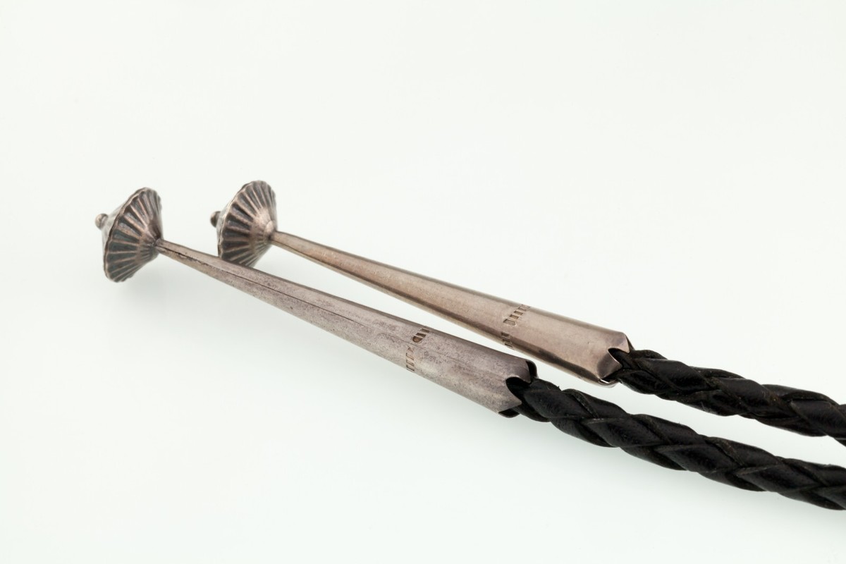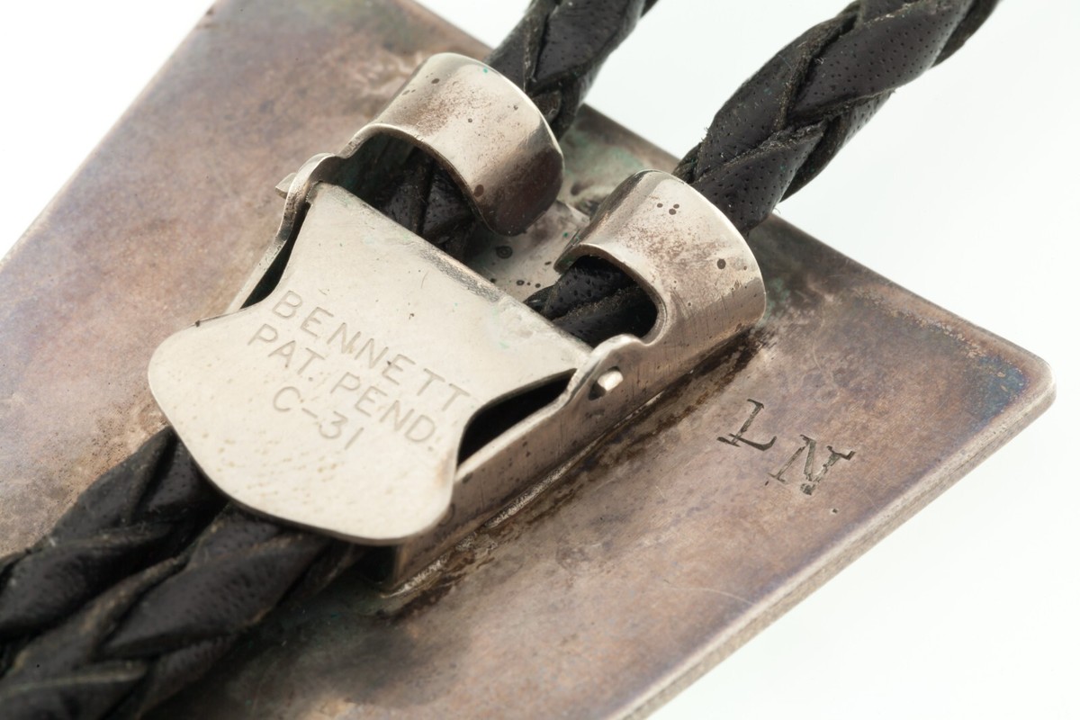 Sterlingsilber Geatzt Shield Bolo Krawatte Mit Geflochten Lederarmband