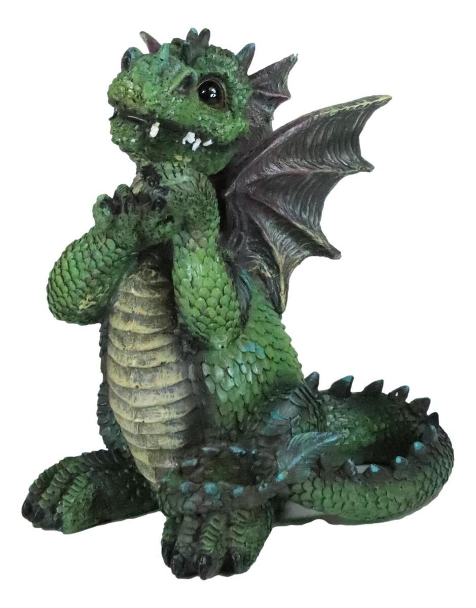 - Fantasy Whimsical Adorable Cheering Green Dinosaur Dragon Collectible Figurine