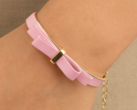 Fashion Bangle 65mm - 4mm Gold Plated Non Hollow PINK BOW Chain
