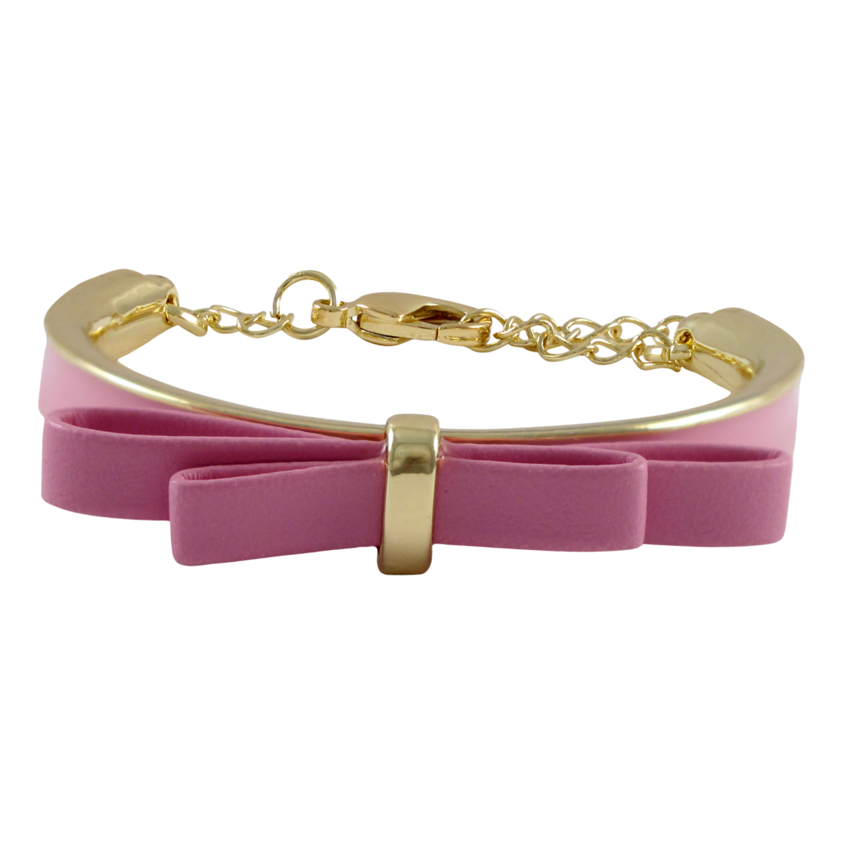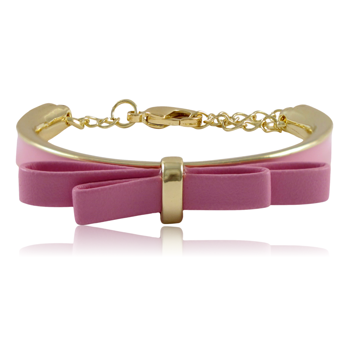 - Fashion Bangle 65mm - 4mm Gold Plated Non Hollow PINK BOW Chain