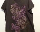 Fashion Bug women's L Graphic Butterfly Black Purple t-shirt top shirt V Neck