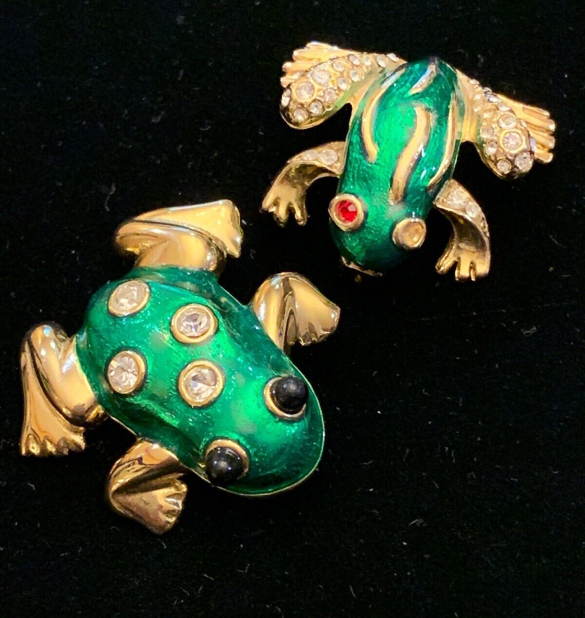- Fashion Frogs - Gold Tone, Enamel & Rhinestone Fashion Frog Brooches/Pins