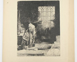 " Faust IN His Estudio" Por Rembrandt Con Grabado Encendido Papel 21.6cmx6