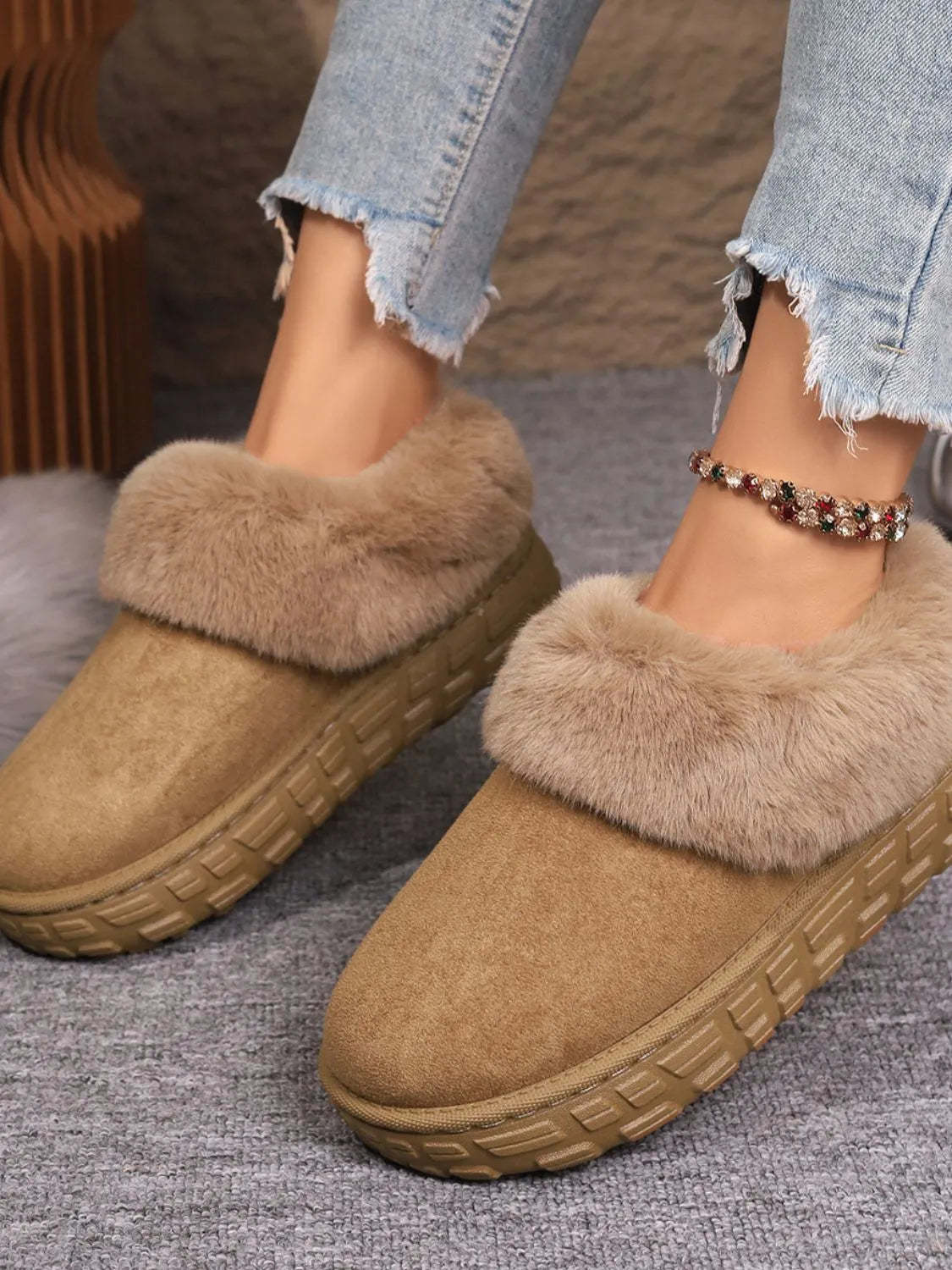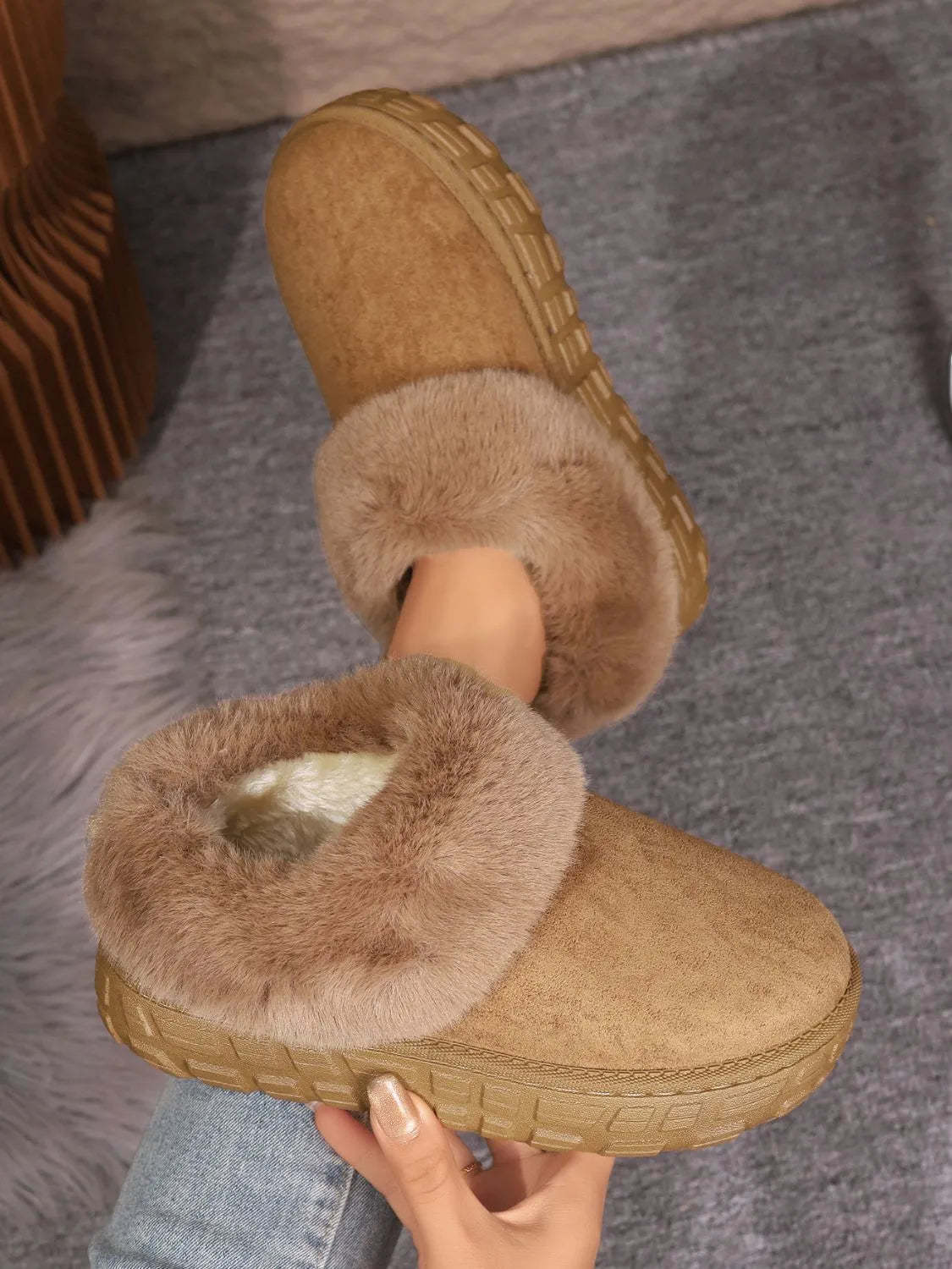 - Faux Fur Lined Suede Winter Boots