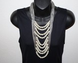 - Faux Pearl 9 Strand Graduating Rope Necklace Silver Tone Statement Runway Bold