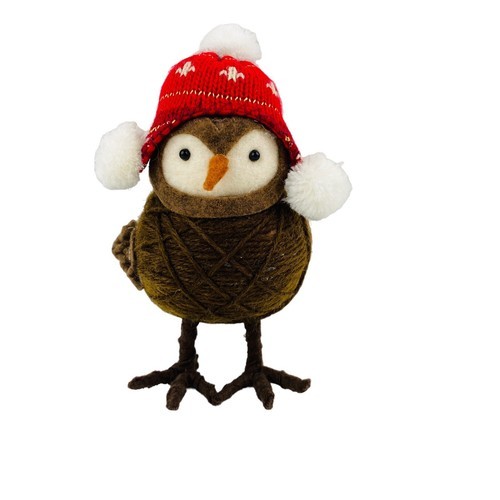 - Featherly Friends Bird Ornament Brown Red Hat White Pompoms 5” Spritz Target EUC