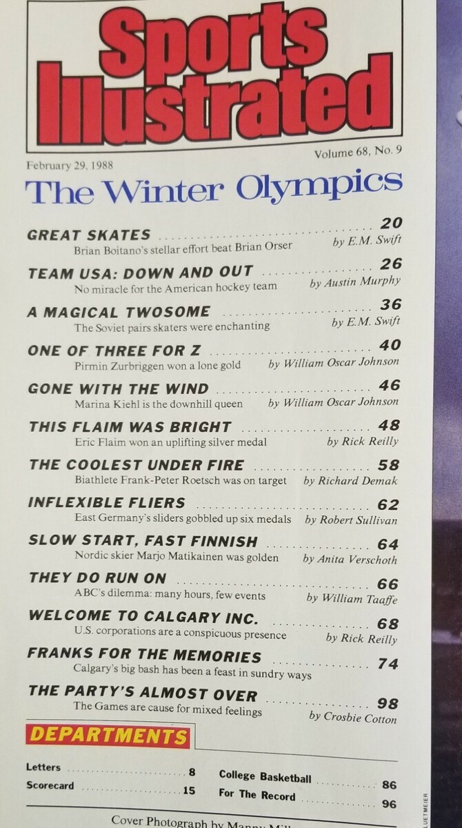 - February 29, 1988 Sports Illustrated Brian Boitano Olympics Issue Magazine