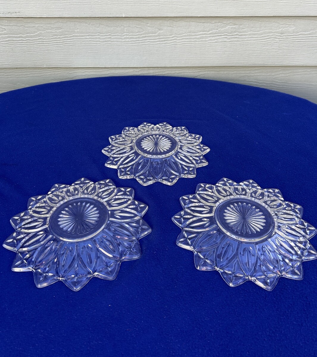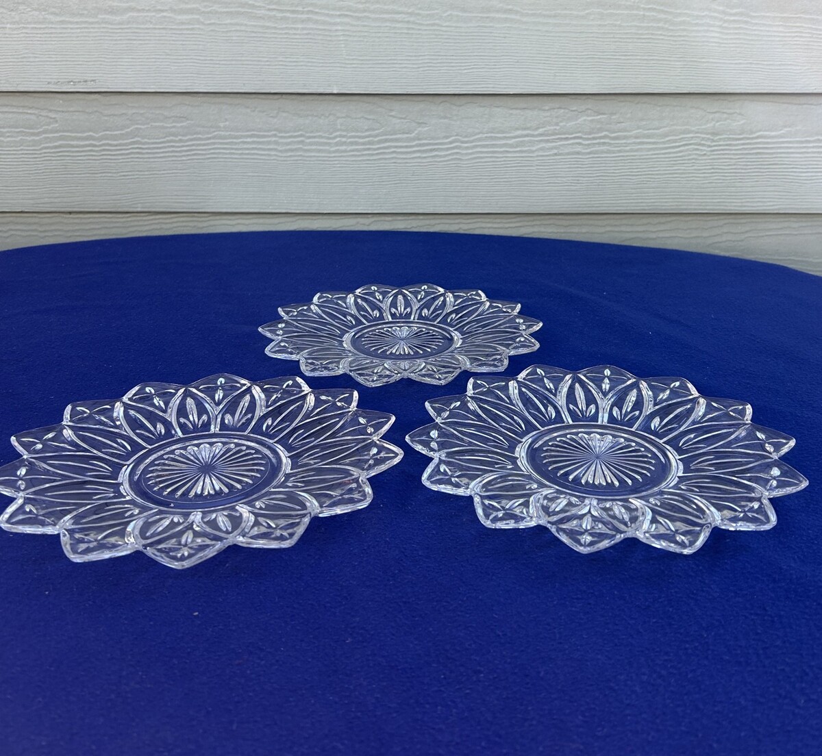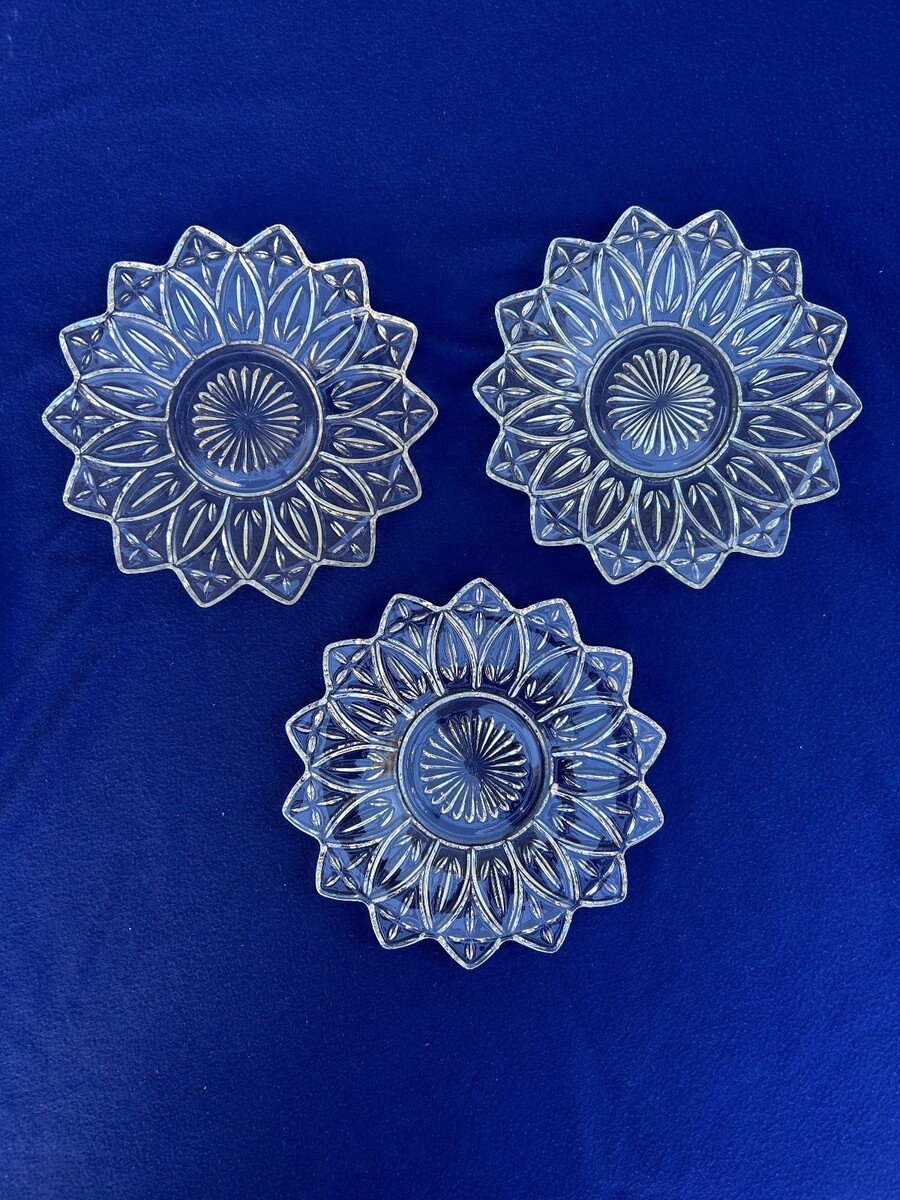 - Federal Glass Petal pattern clear dinner plates vintage lot of three 9 3/4"