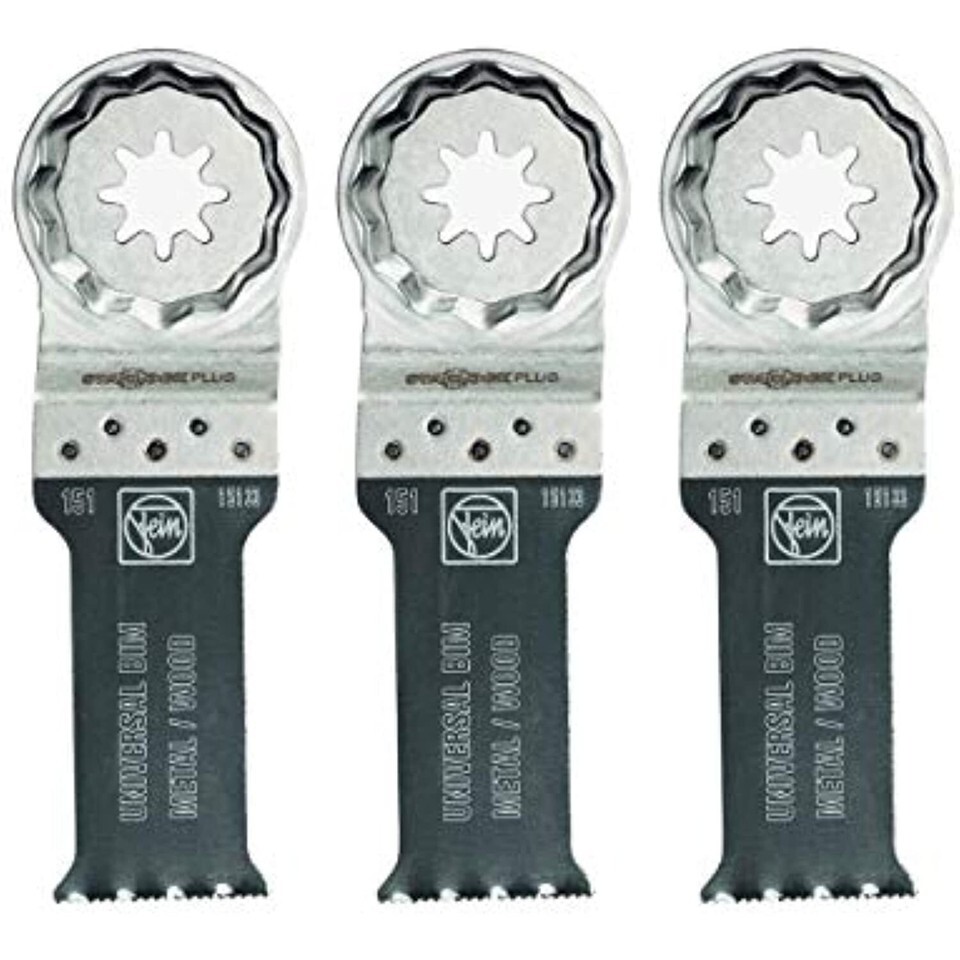 Fein Bi-Metal E-Cut Universal Saw Blade for Aluminum Profile, Wood Materials, Drywall and Soft Plastics - Narrow-Waisted Shape, StarLock Mount, 3-Pack - 63502151270