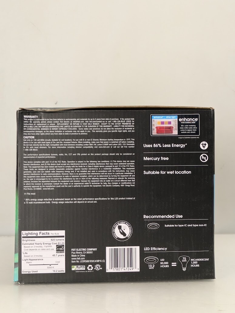 - Feit Electric Enhance Vivid Natural Light 75 Watt LED with Baffle Trim 6 Pack