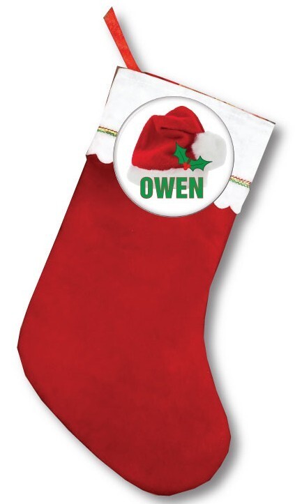 - FELT 18" STOCKING & CHRISTMAS SANTA HAT PERSONALIZED PINBACK BUTTON 3"