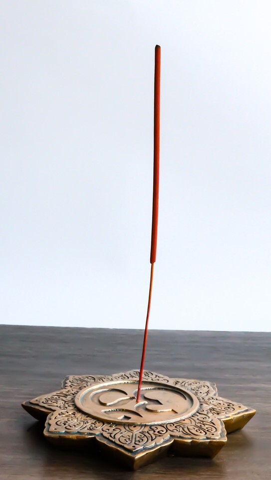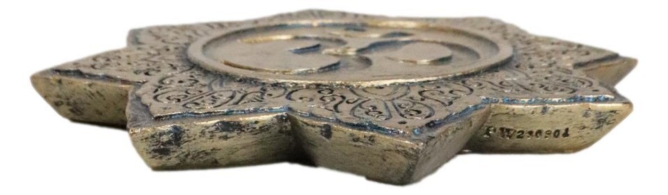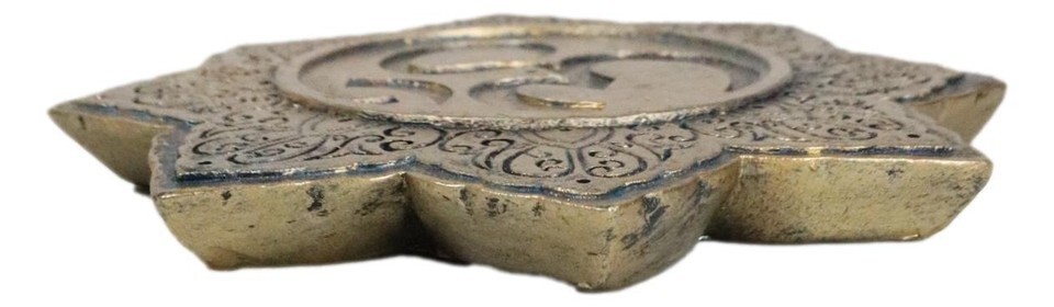 ? This Buddha Om Lotus Padma Mandala incense stick holder is attractive in design and sculpting. Simply place a smoking incense stick in the center of the disc and enjoy the aroma from your incense. The Om mantra at the center and the lotus shaped incense burner will help your focus the recenter your consciousness and inner self.