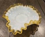 - Fenton Amber Gold Crest Bowl Triangular Bon Bon Candy 5 3/4" Wide