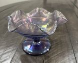 - Fenton Amethyst Satin Iridescent Stretch Glass Compote Ruffle Purple Candy Dish