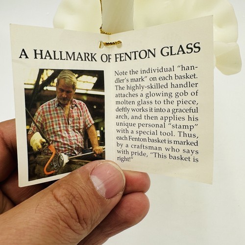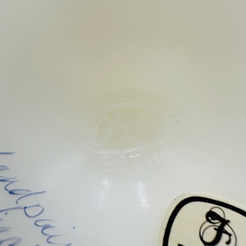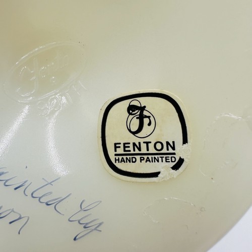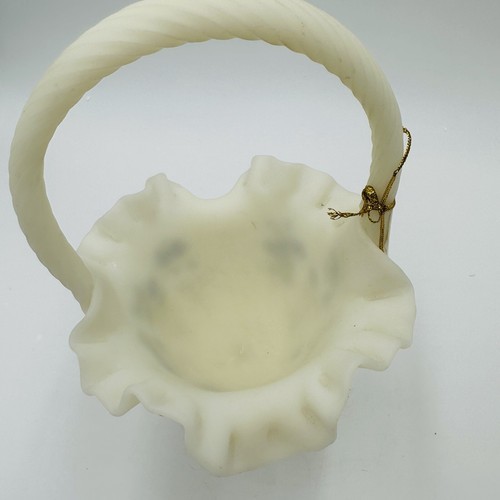 - Fenton Basket Art Custard Glass Signed Ruffled Floral Butterfly Hand Painted