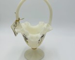 Fenton Art Custard Glass Signed Ruffled Basket Floral Butterfly Hand Painted.