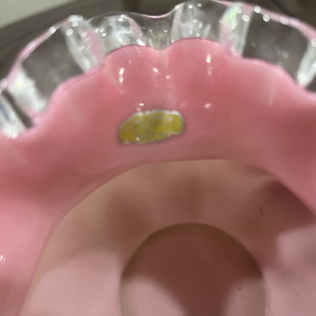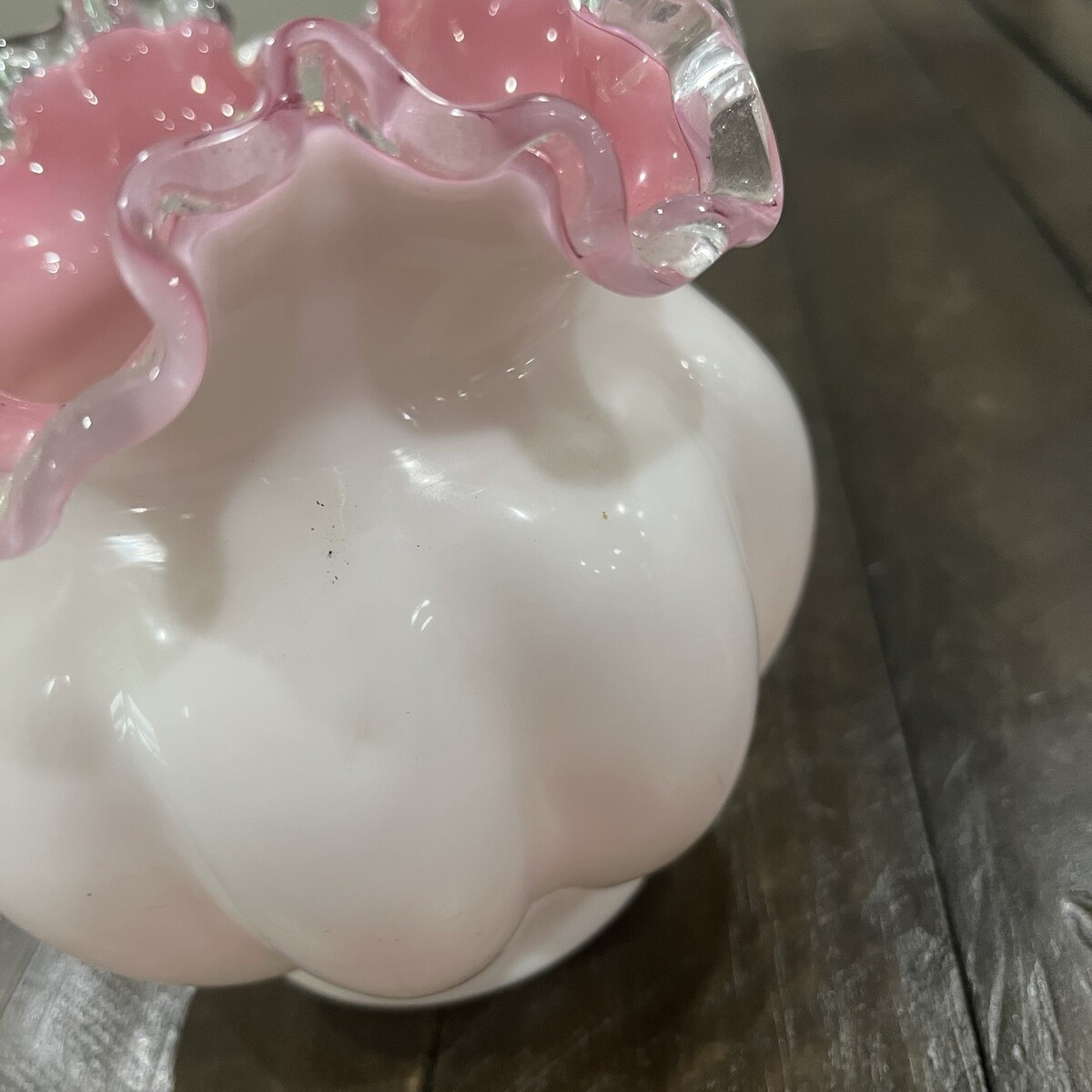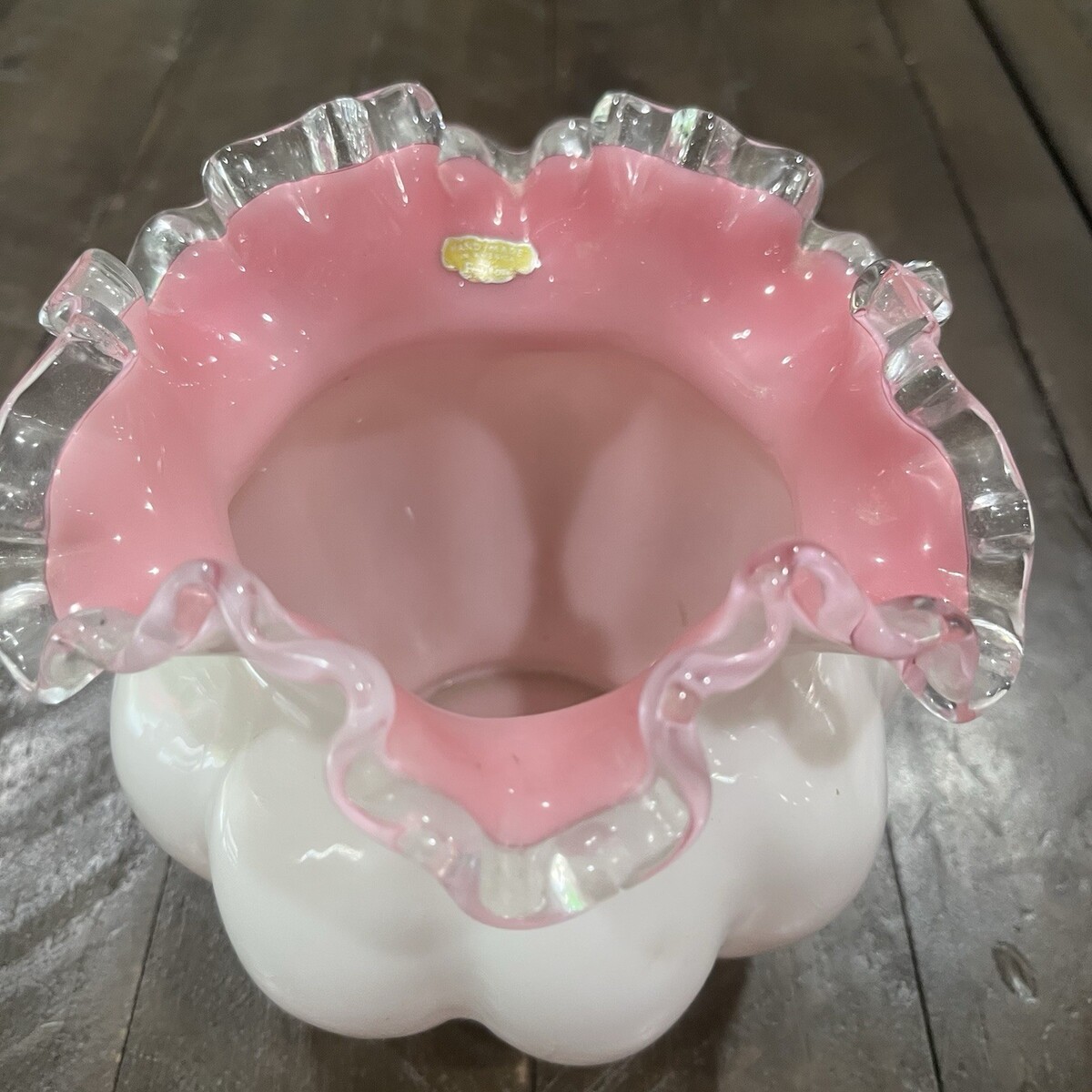- Fenton Peach Pink Crest Mellon Vase Silver Crest White Milk Glass Sticker 1940s