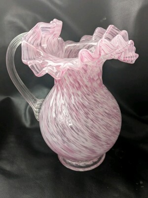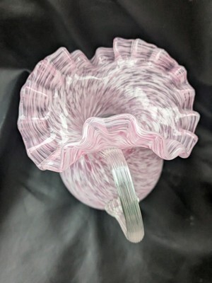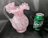 Fenton Rosa Bianco Spruzzi Vetro Caraffa Brocca Filettato Manico Arruffato Rim 9
