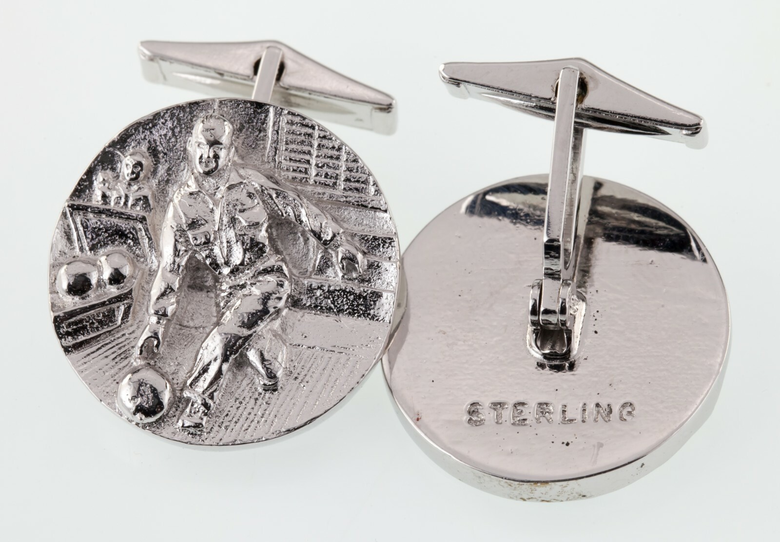Fenwick & Sailors 1950s Nouveauté Bowling Haut Relief Argent Sterling Boutons