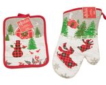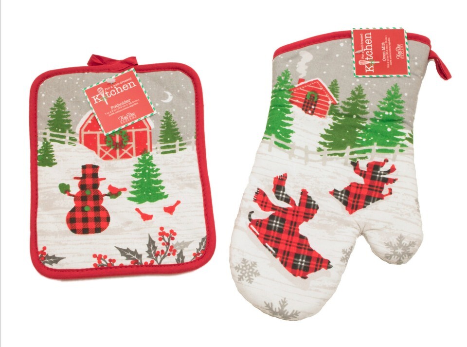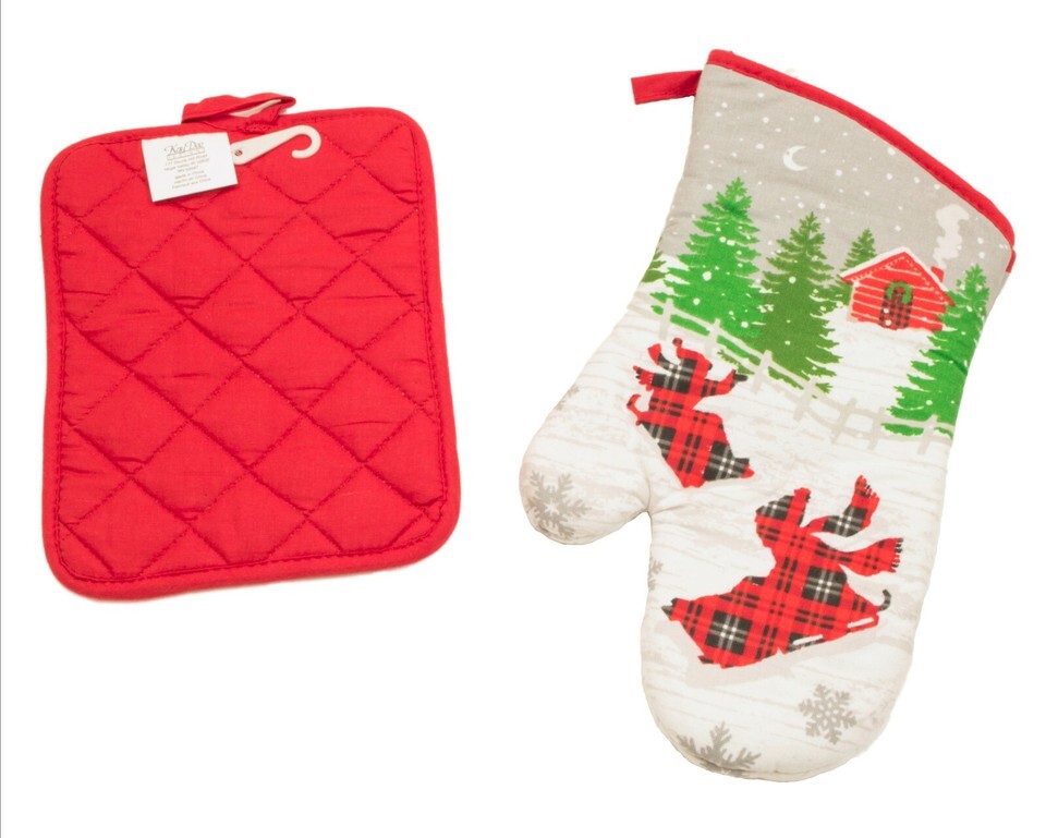- Festive Winter Holiday Set of Matching Oven Mitt and Pot Holder CLOSEOUT