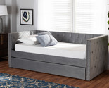 - Feya Gray Velvet Fabric Upholstered Twin Size Daybed w/Trundle