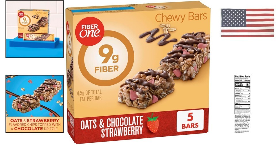 - Fiber One Chewy Bars, Oats & Chocolate Strawberry, Fiber Snacks, 5 ct, 7 oz