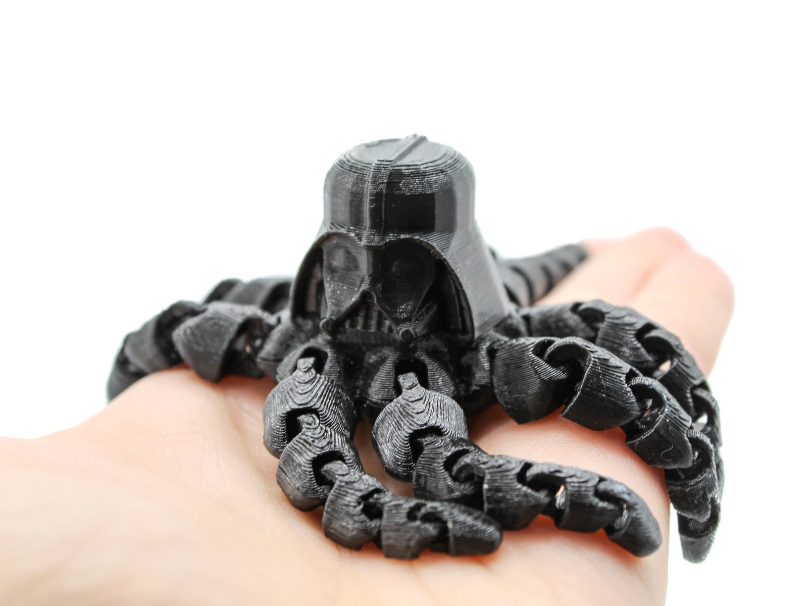 This fidget Darth Vador Octopus is much more friendly than it looks. It is 4 3/4" long and has a strong connection to the force. It is made from a biodegradable, plant based and environmentally safe plastic.