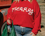 ? The sweater is highlighted with a festive "Merry" graphic spreading holiday cheer.