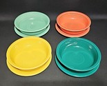 UP FOR SALE: Add a splash of vintage charm to your table with this colorful set of Fiesta dinnerware by Homer Laughlin. This 8-piece set includes 4 soup/cereal bowls and 4 lunch plates in four classic Fiesta colors: yellow, red-orange, turquoise, and light green.