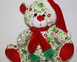Fiesta Teddy Bear 8" Christmas Red and Green Printing on White Plush Sitting Hat Scarf Stuffed Soft Toy X12814