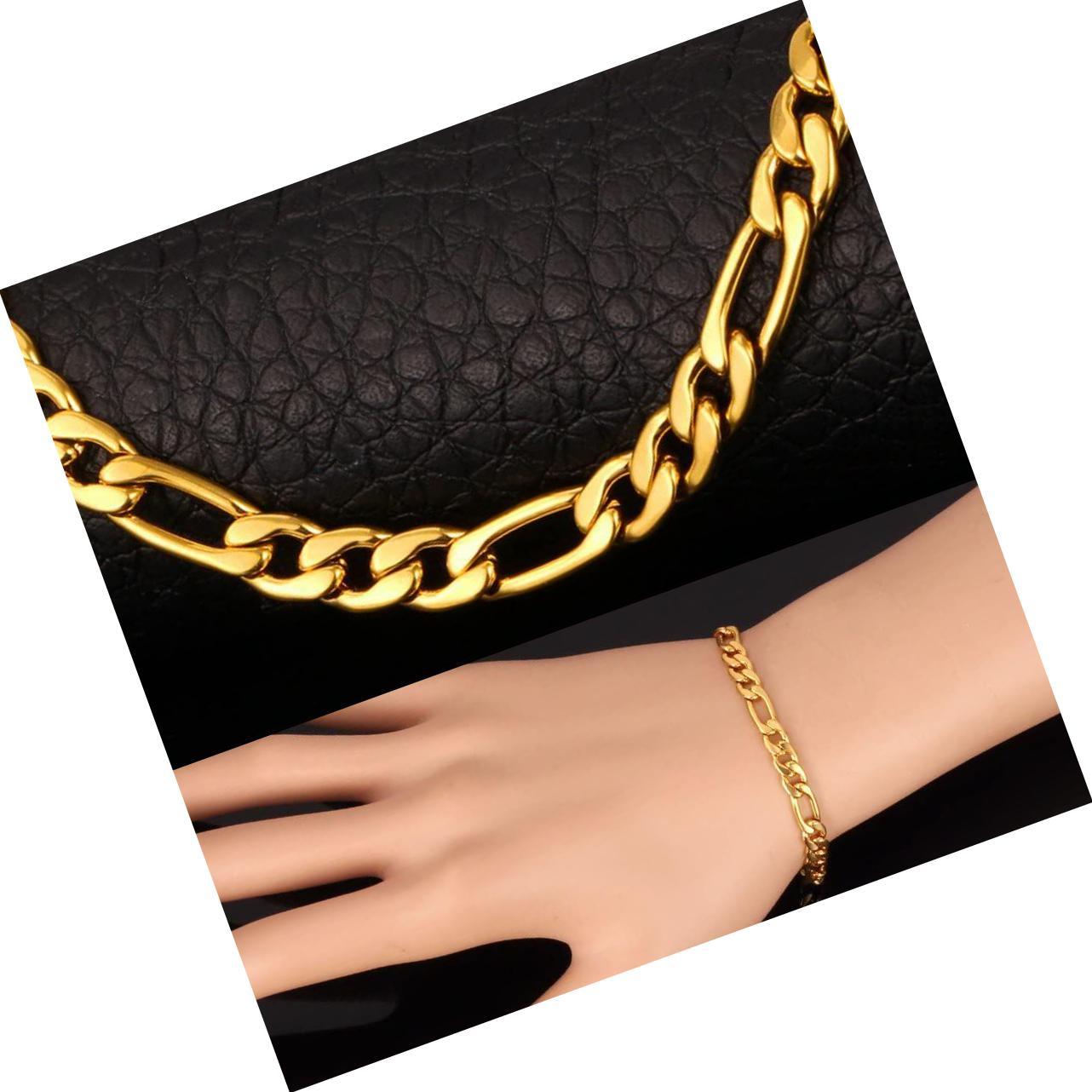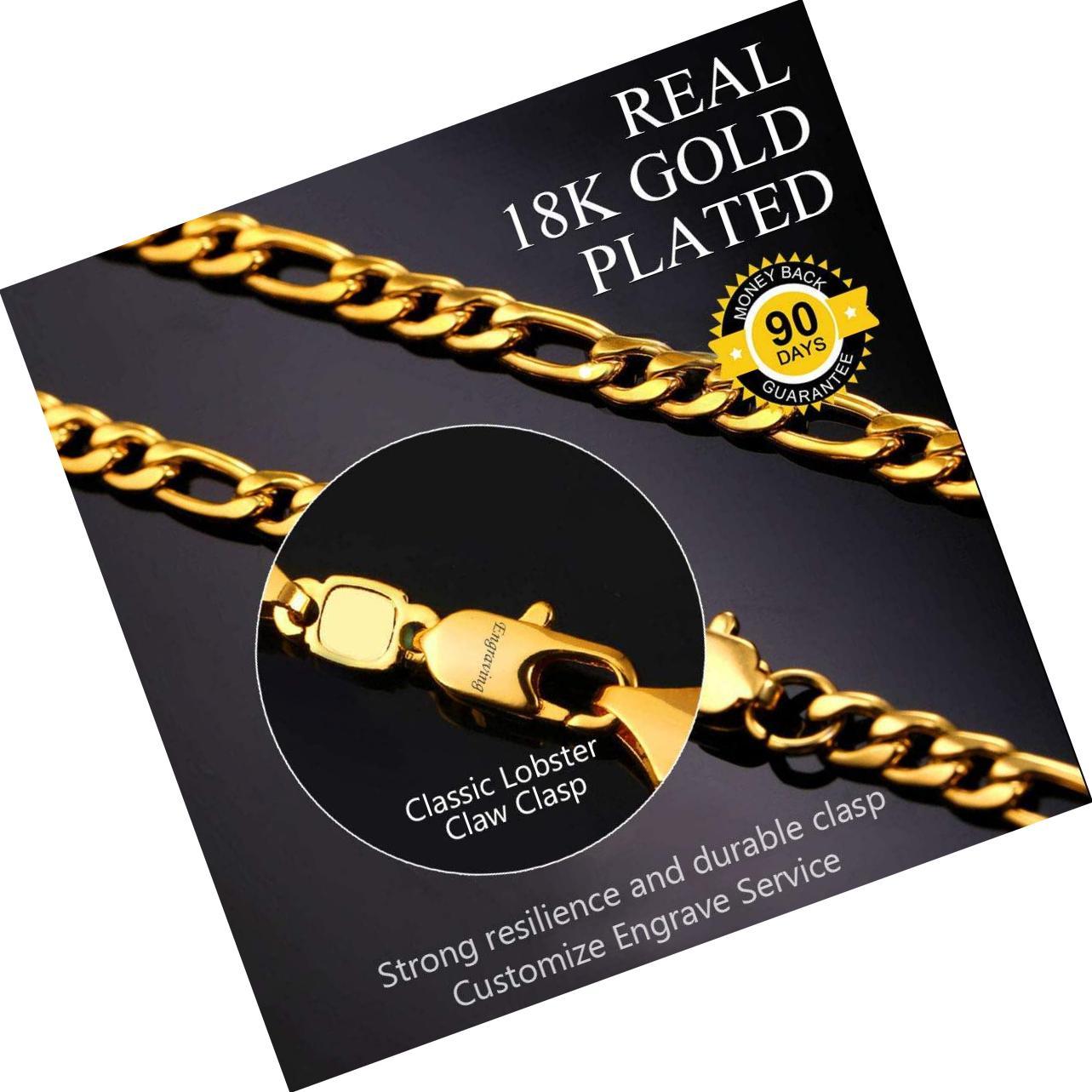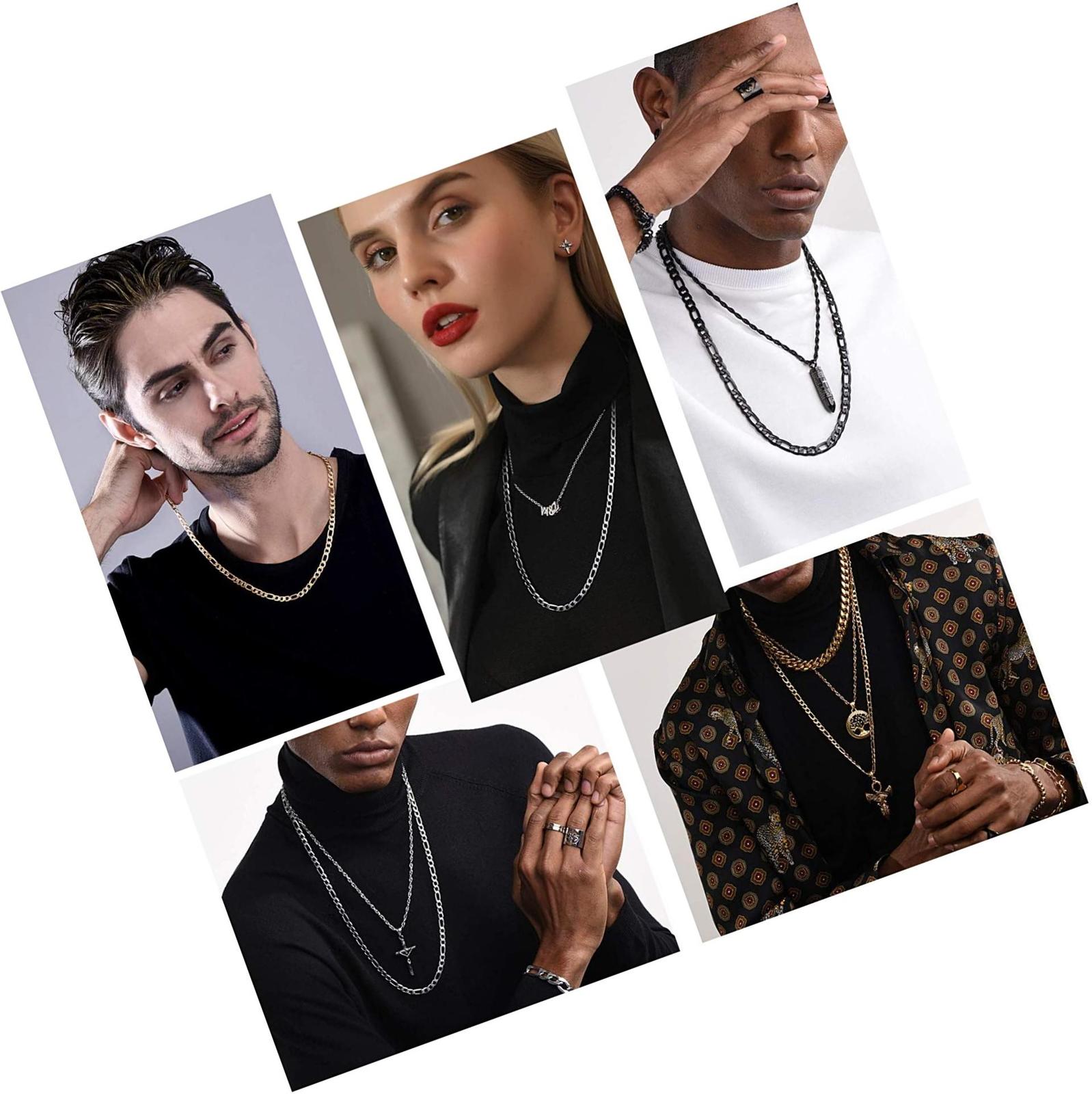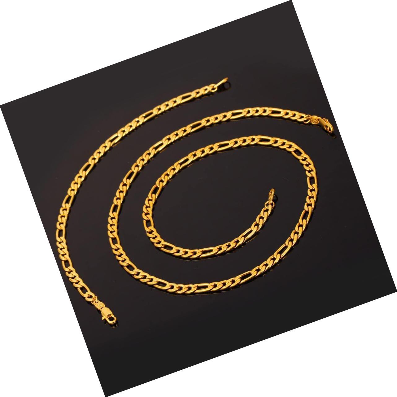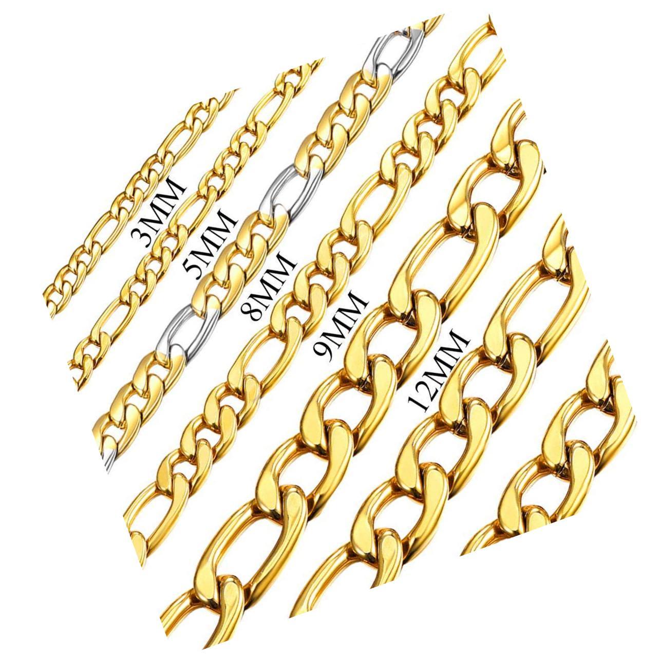 - Figaro Chain, Twisted Rope Chain, Men Stainless Steel 18K