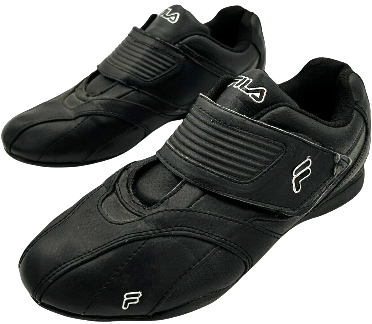 - Fila mens Mach 6 Black/Black/Metallic Silver Faux Leather Classic Sneaker size 8