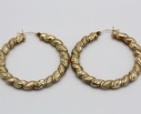Fine 10K Yellow Gold Satin Finish Diamond Cut Design Twist Hoop Earrings 50MM