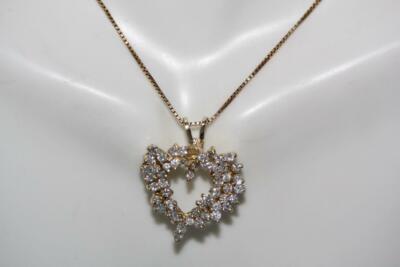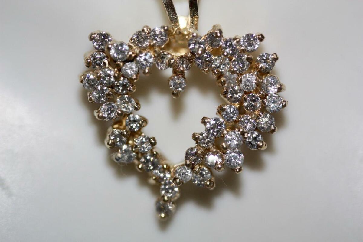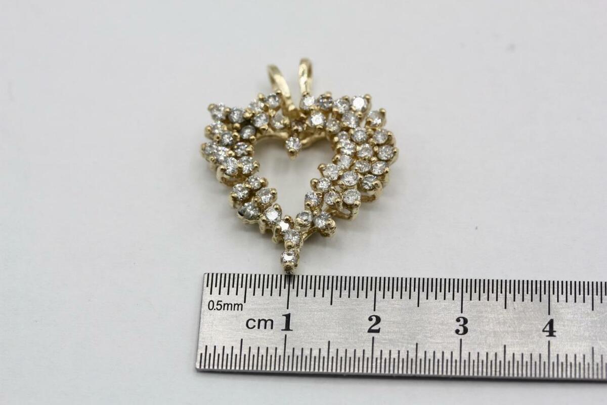 - Fine 14K Yellow Gold Large Diamond Cluster Open Heart Pendant 1.50ctw (5.0grams)