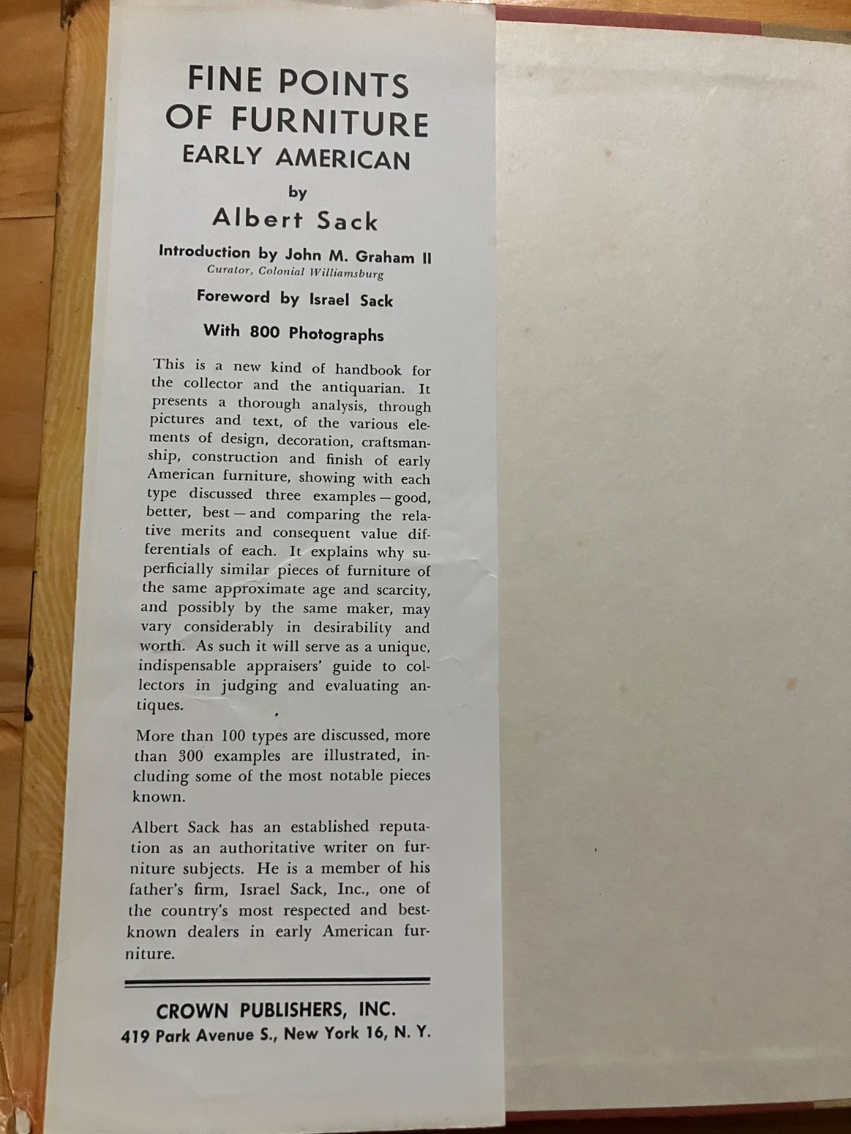 - Fine Points Of Furniture: Early American by Albert Sack 1950