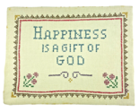 - Finished Christian Cross Stitch Happiness Is A Gift Of God Floral Corner 10x13"