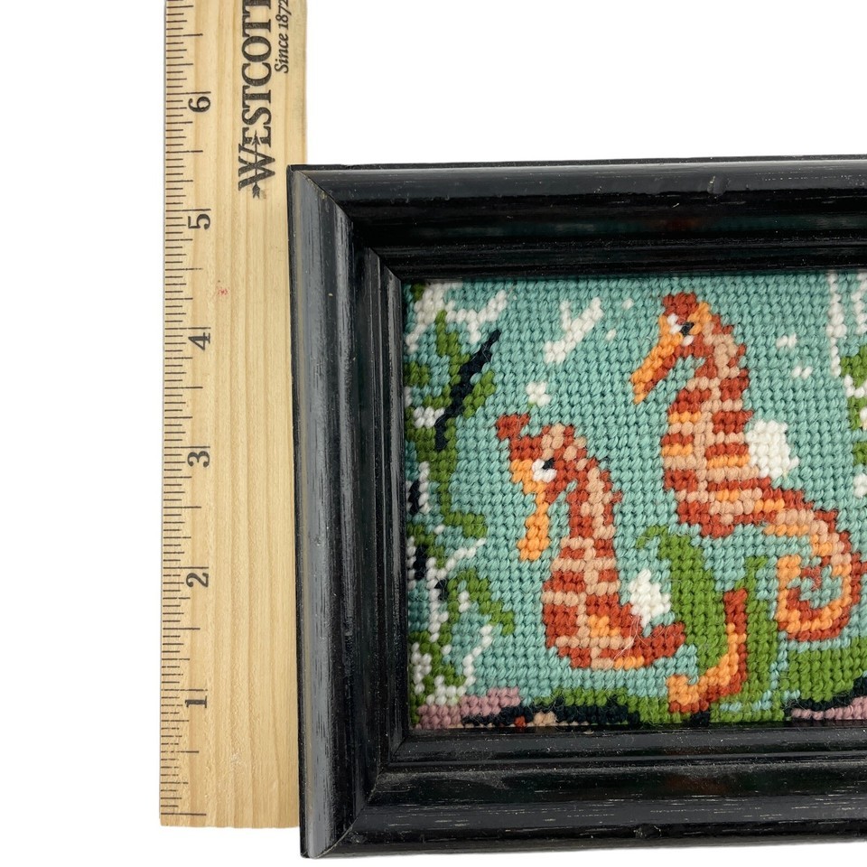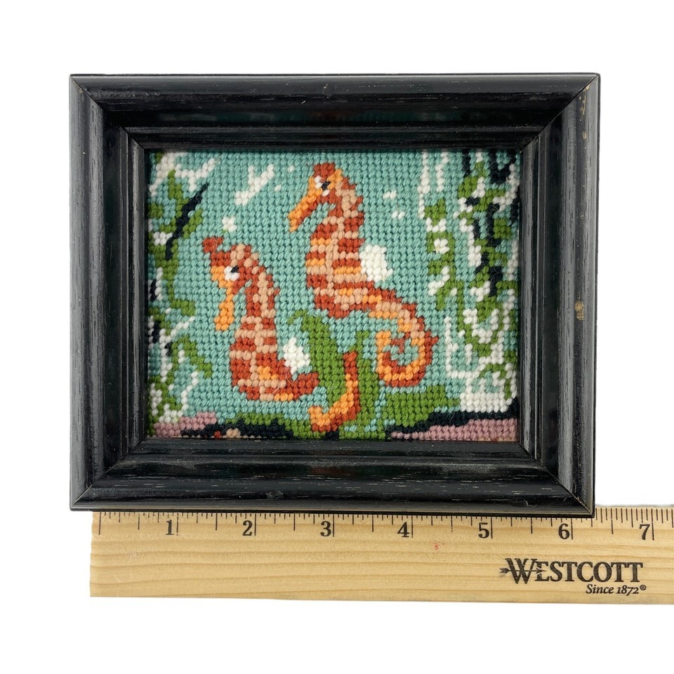 - Finished Cross Stitch Sea Horse Ocean Kelp Columbia Minerva 5x6 in. Green Orange