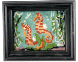 - Finished Cross Stitch Sea Horse Ocean Kelp Columbia Minerva 5x6 in. Green Orange