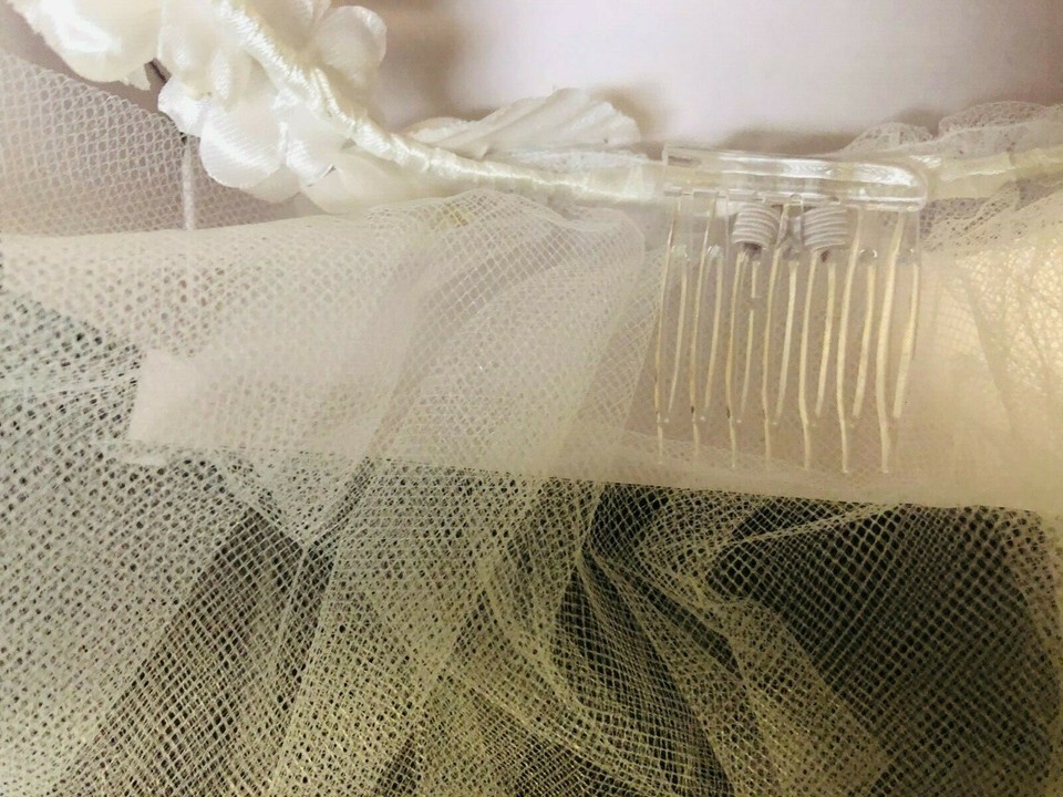 You are purchasing a beautiful first holy communion with a floral headband veil. Made of nylon mesh with a tiara made of silk florals. This will complement that special day. The measurement of the veil is approx. 19" long. It comes with it's own box for save keeping. Please see the pictures for details.