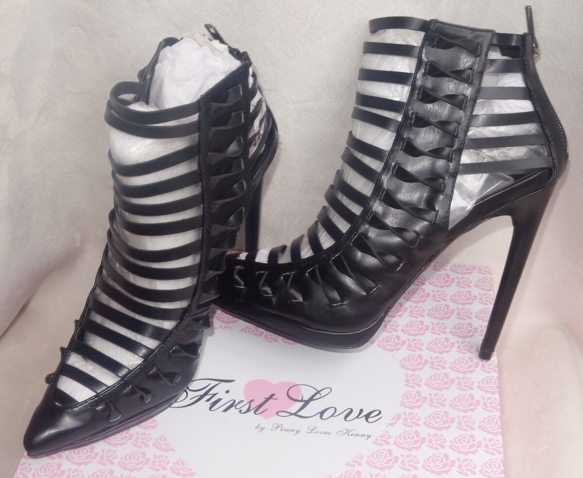 First Love By Penny Loves Kenny whisper black cage sandals Size 6.5 new