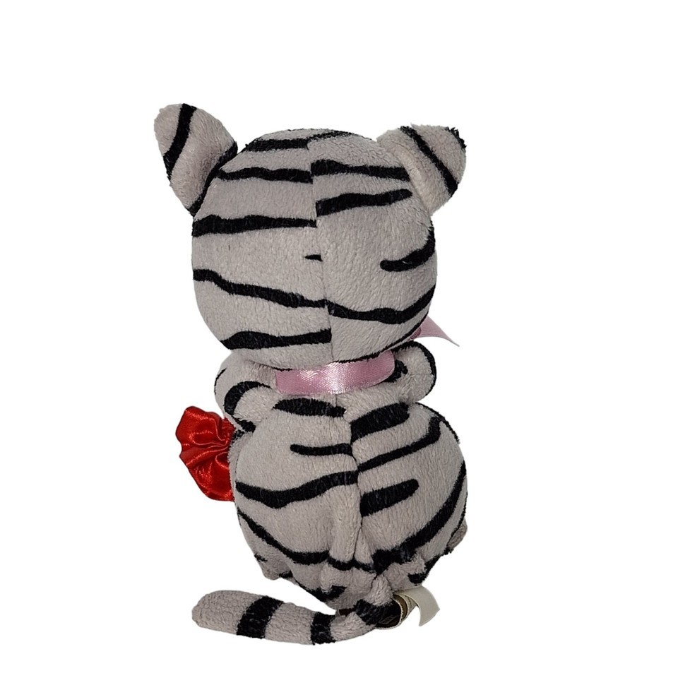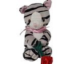 First Main Stripes Tabby Cat Black Gray Plush Holding Rose Stuffed Animal 7.5"