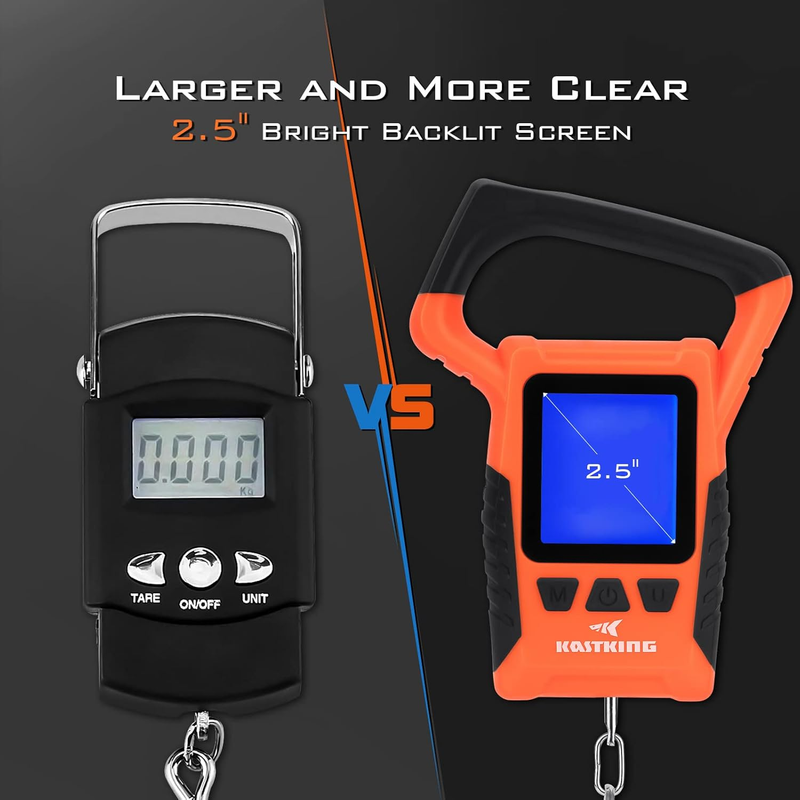 The KastKing WideView digital scale is accurate to 1/10th of a pound and includes a stainless-steel hook and an easy-to-use lip grip for weighing your catch. Accurately weigh fish up to 110 lbs. or 50 kg.