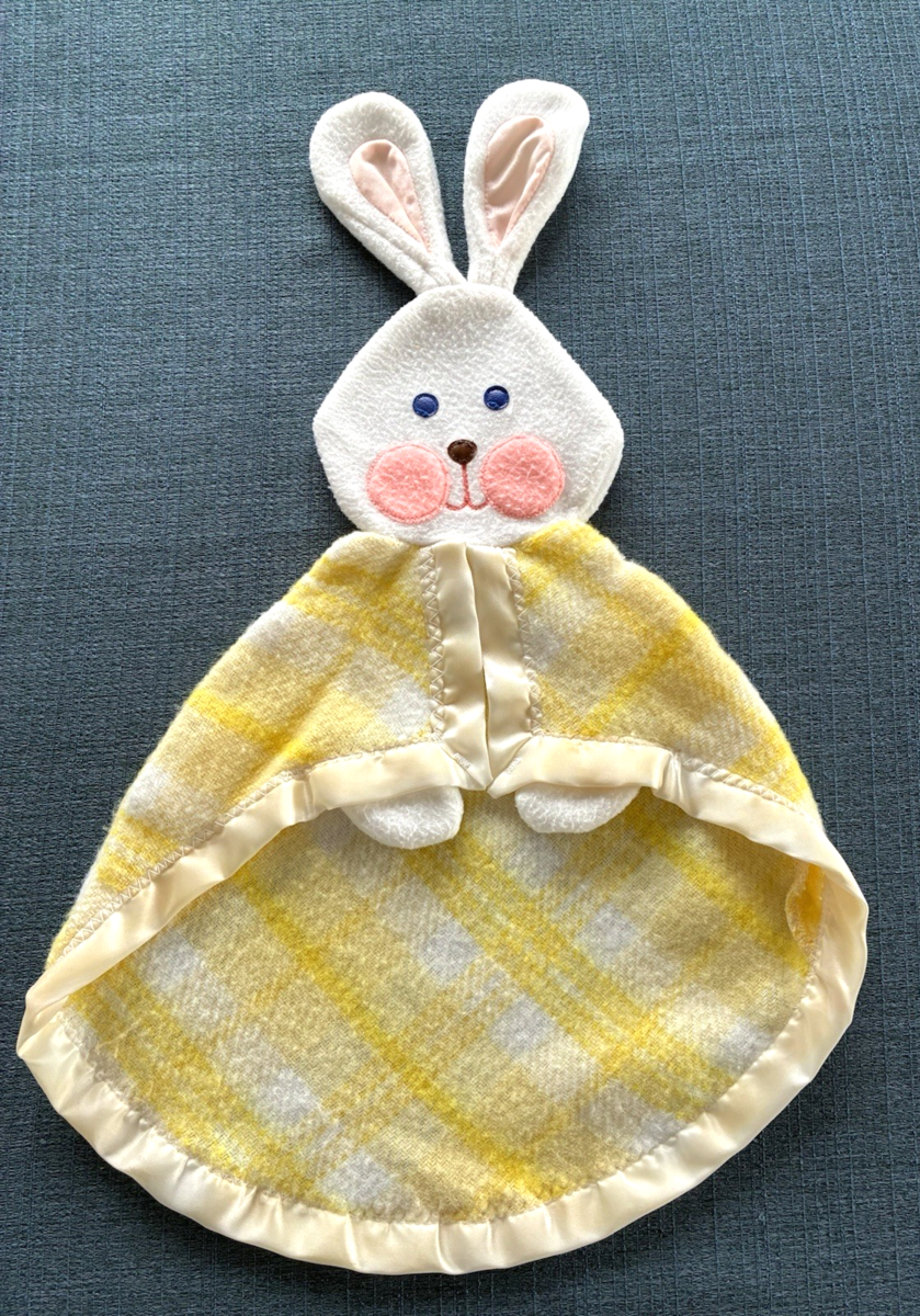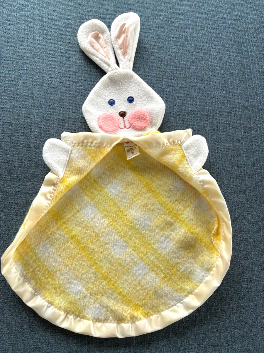 - Fisher Price 441 Security Bunny Plaid Yellow Lovey Blanket Vtg 1979 Plush Rabbit