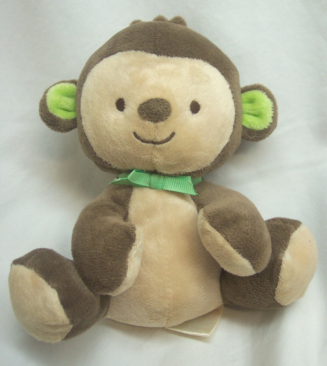 - Fisher-Price Baby Snugamonkey BROWN MONKEY W/ GREEN BOW 6" Plush STUFFED ANIMAL