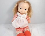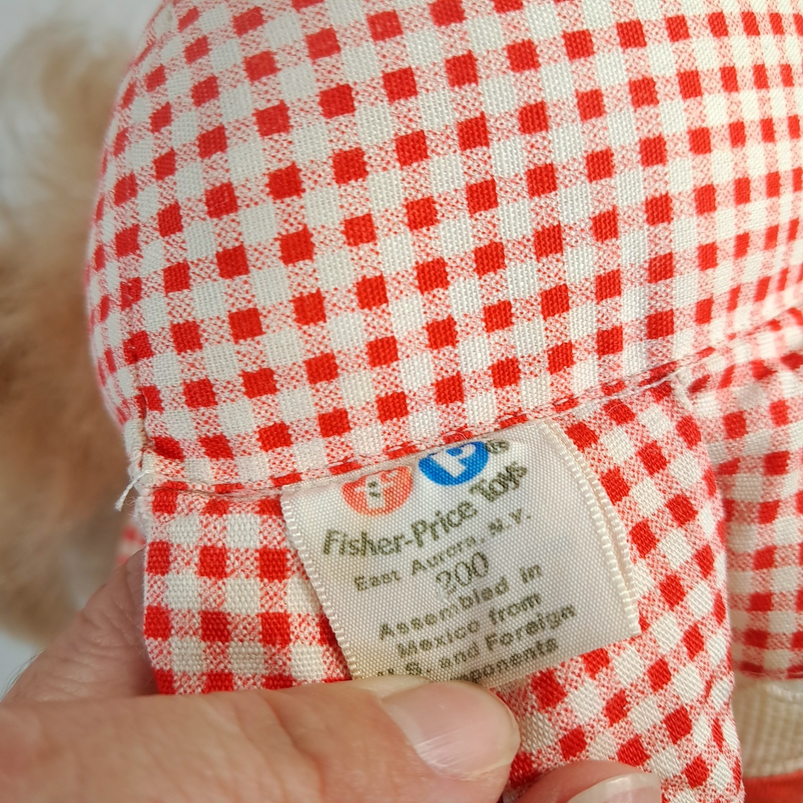 - Fisher Price Toys #200 Mary Lapsitter baby Doll red plaid apron 1973 Vintage