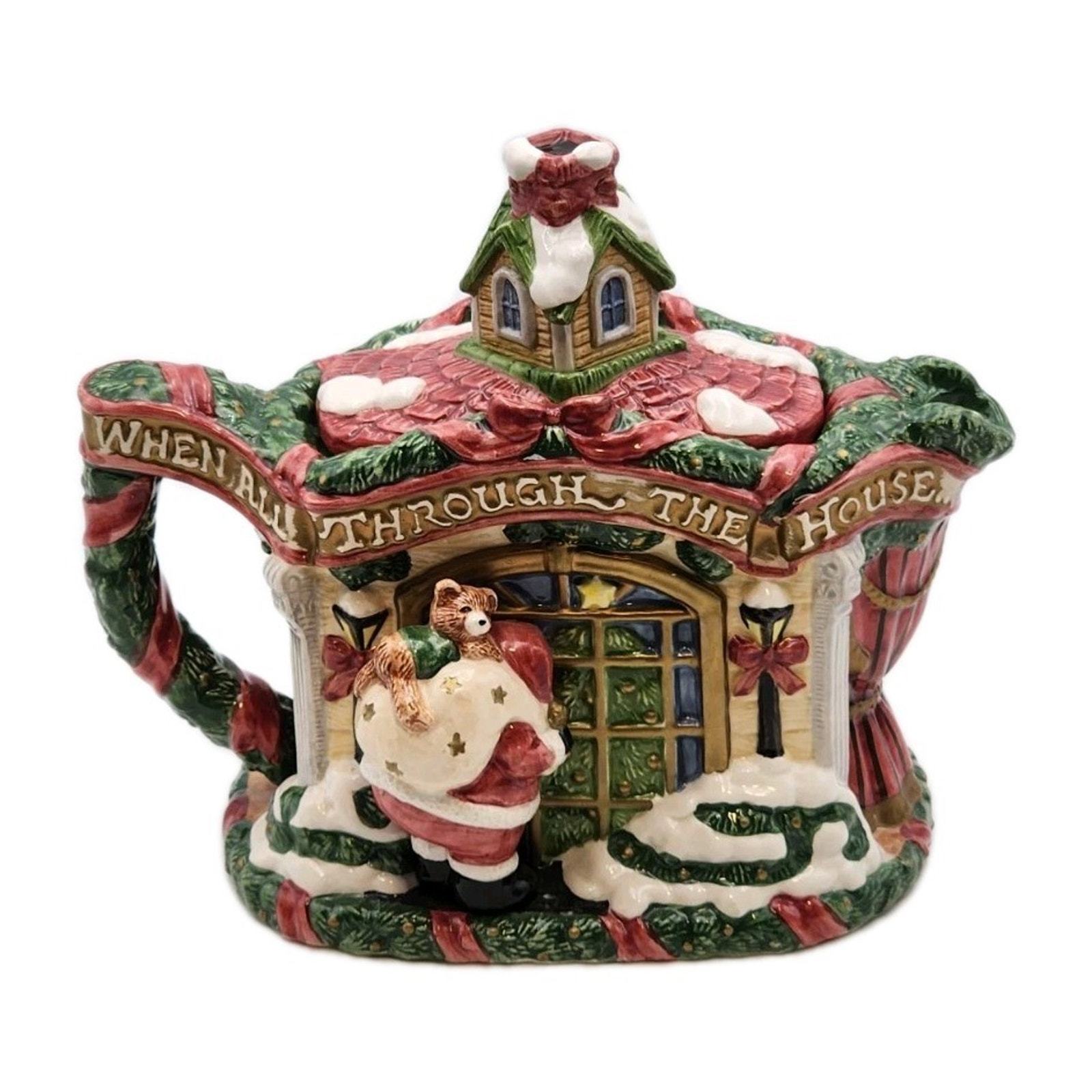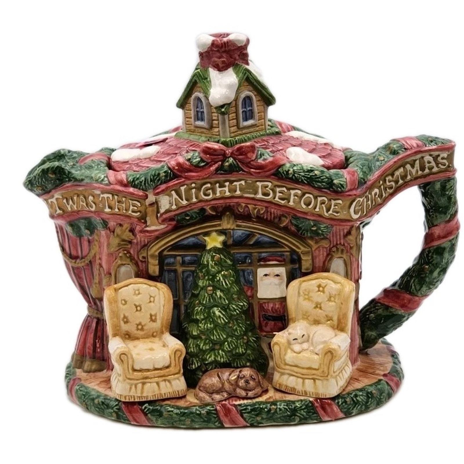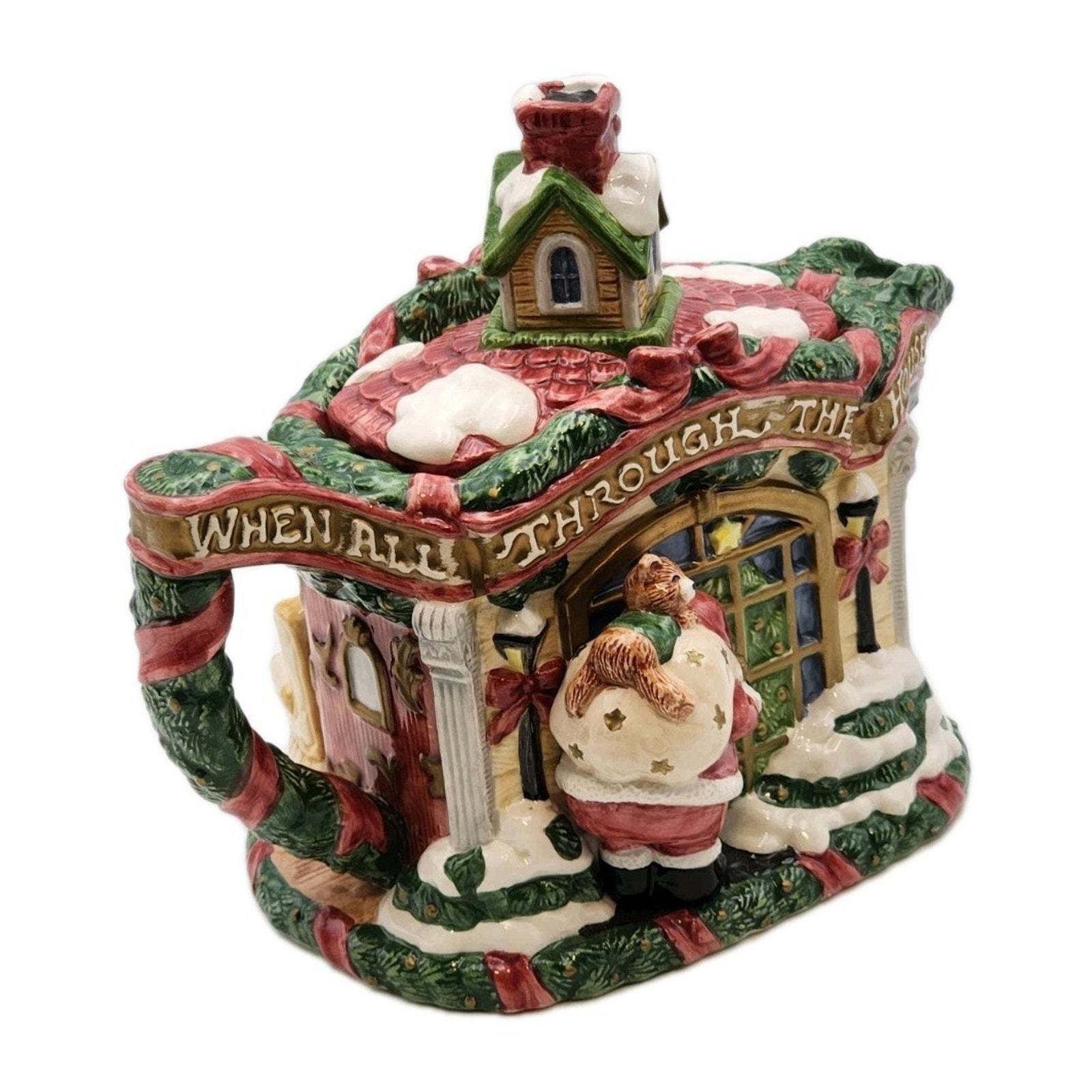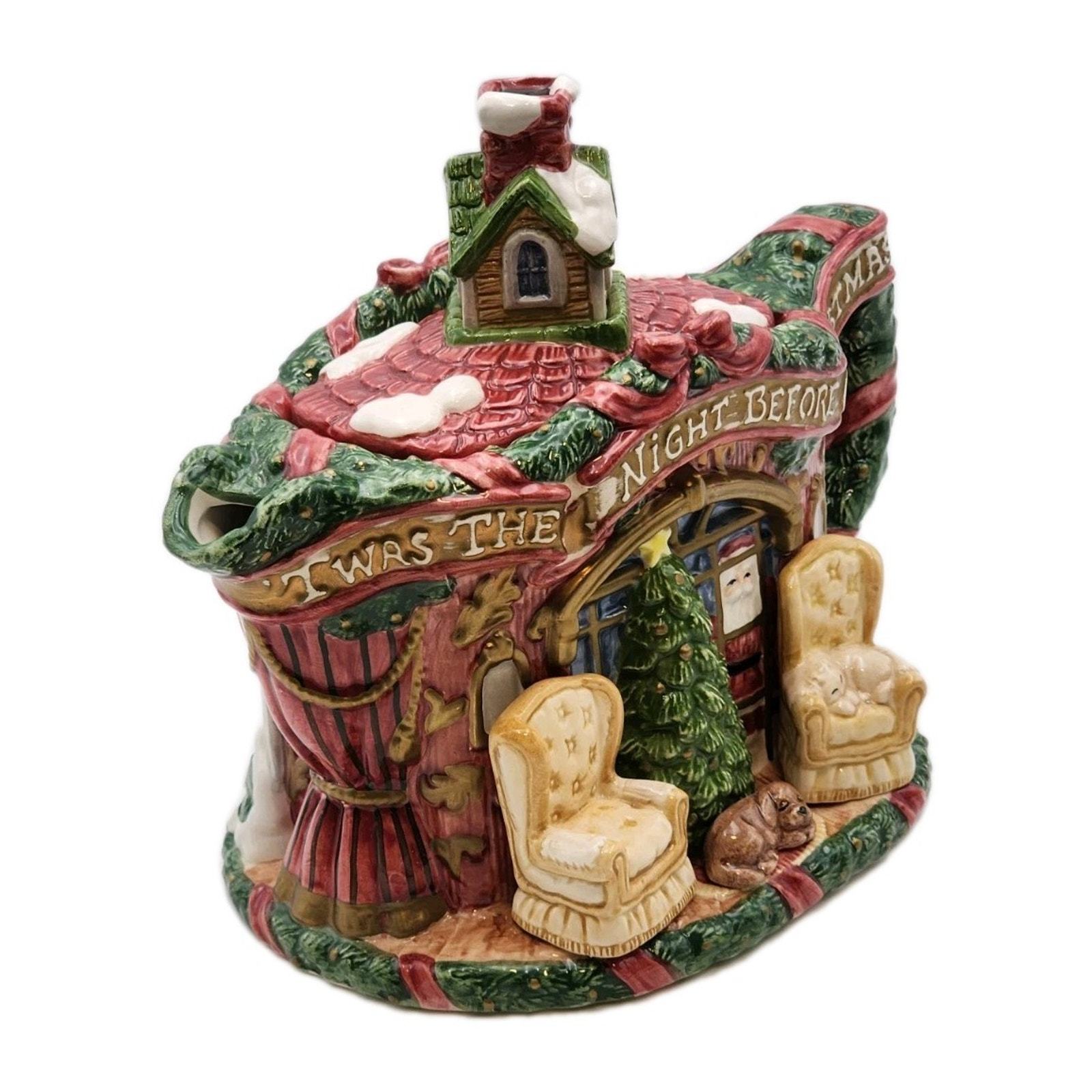 - Fitz & Floyd The Night Before Christmas Teapot & Lid 7 1/4 Inch Tall VTG 1993
