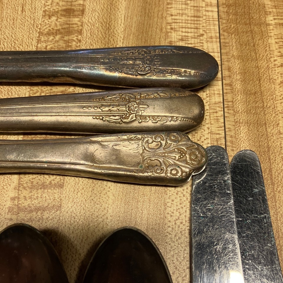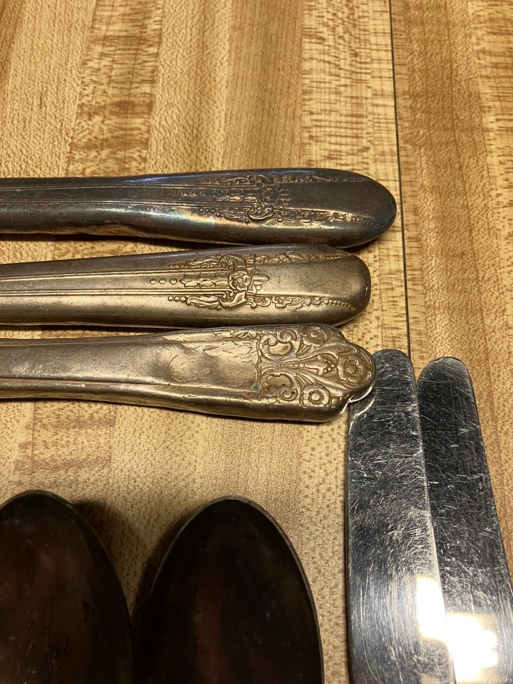 Very used condition with tarnishing and wear. (see pictures) Two of the knifes are misshaped (see pictures)
