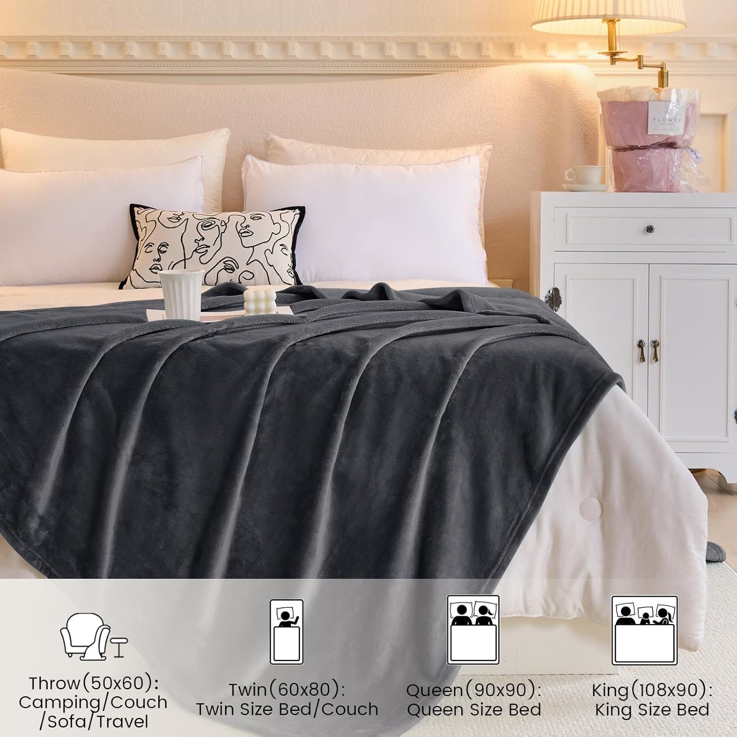 - Fleece Blankets Twin Size, Silky Flannel Fuzzy Blanket For All Season,, Gray