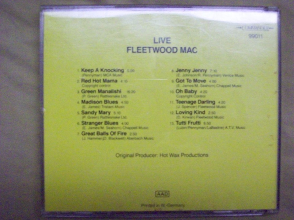 FLEETWOOD MAC Live CD - Commander 99011 - Printed in W. Germany - UNPLAYED !